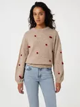 Fabienne Chapot Linda Cherry Embellishment Wool Rich Jumper, Creme Brulee Melange