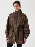 HUSH Utility Leopard Print Parka Coat, Brown/Multi