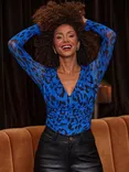 Sosandar Animal Print Mesh Top, Blue, Blue