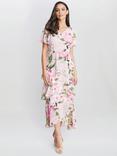 Hobbs Taylor Floral Linen Blend Dress, Ivory/Multi