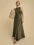 FLORERE Rib Knit/Satin Midi Dress, Khaki