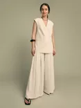 FLORERE Deep Pleat Wide Leg Trousers, Cream