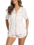 Loungeable Printed Dobby Palm Tree Short Sleeve Shirt and Shorts Pyjama Set, White, White