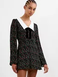 French Connection Cambria Floral Sleeve Tie Up Shirt, Linen White/Black