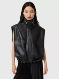 Clay Funnel Neck Pure Leather Gilet, Black