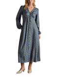 Joules Geometric V-Neck Midi Dress, Blue/Green
