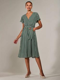 Short Sleeved Geometric Print Midi Dress, Multi