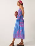 Monsoon Pamela Palm Print Sun Dress, Blue/Multi
