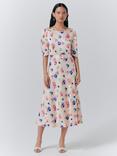 Ghost Maree Short Sleeve Floral Midi Dress, Red/Multi