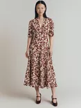 Ghost Madi Floral Midi Dress, Burgundy/White