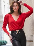 Sosandar Faux Wrap Premium Top, Bright Red