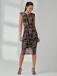 Jolie Moi Geometric Bodycon Midi Dress, Brown Geo