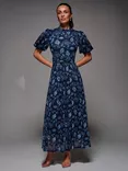 Jolie Moi Puffy Sleeve Mesh Dress, Navy