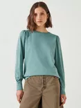 HUSH Emily Puff Sleeve Cotton Jersey Top, Dark Aqua