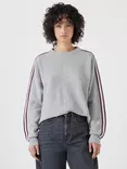 HUSH Lydia Ottoman Stripe Crew Neck Jumper , Light Grey Marl