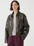 HUSH Zip Front Pure Leather Jacket, Olive Green