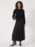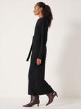 HUSH Wool Long Sleeve Round Neck Buckle Midi Dress