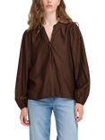 ICHI Magga Stripe Button Detail Top, White/Multi