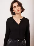 Mint Velvet Crew Neck Button Up Top, Black