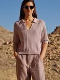 Whistles Pointelle Collar Detail Knit Top, Lilac