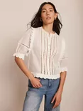 Mint Velvet Ruffle Trim Cotton Top, White Ivory