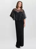 Gina Bacconi Anoushka Beaded Cape Maxi Dress, Black