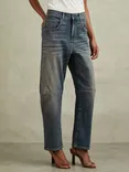 Reiss Mahni Washed Barrel Leg Jeans, Mid Blue