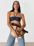 Whistles Mixed Rib Halterneck Bikini Top, Navy