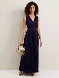 Phase Eight Bonnie Pleated Wrap Satin Maxi Dress, Navy