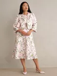 Hobbs Lana Jacquard Floral Dress, Pale Pink/Multi