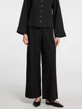 Selected Coria High Waist Crinkle Wide Leg Trousers, Black