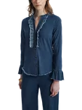 James Lakeland Ruffle Detail Denim Blouse, Blue, Blue