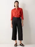 Jigsaw Kemp Cropped Pure Linen Trousers, Black, Black