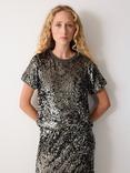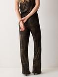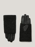 Jigsaw Knitted Leather Gloves, Black
