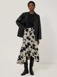 Jigsaw Rose Outline Midi Skirt, Natural/Black