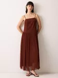 Jigsaw Silk Top Split Drop Waist Dress, Brown
