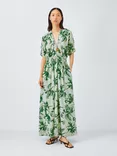 John Lewis Danique Cotton Blend Floral Maxi Tea Dress, Green