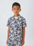 John Lewis Areca Palm Pair Lined Eyelet Curtains, Navy