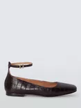 John Lewis Henney Leather Ankle Strap Ballerina Pumps, Chocolate Croc