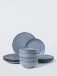 Ripple Stoneware Dinnerware Set, 12 Piece, Ice Blue