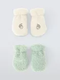 John Lewis Baby Acorn Mittens, Pack of 2, Cream/Aqua