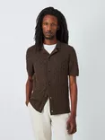 John Lewis Cotton & Linen Blend Revere Collar Button-Through Knitted Shirt, Chocolate Brown