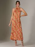Jolie Moi Halter Pleated Maxi Dress, Orange/Multi