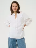 KAFFE Ulla Embroidered Tie Neck Top, White