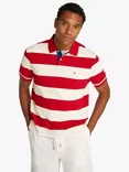 Tommy Hilfiger Cotton Blend Regular Fit Block Stripe Polo Shirt, Med Red/Ivory Petal