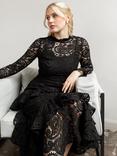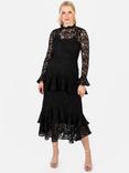 Maya Deluxe Lace Ruffle Midaxi Dress, Black