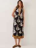 Monsoon Pamela Leaf Pint Midi Dress, Black/Multi
