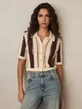 Reiss Roni Crochet Stripe Shirt, Cream/Brown