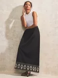 Ro&Zo Cotton Blend Petite Embroidered Maxi Skirt, Black