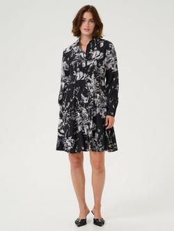 Kaisa Floral Shirt Dress, Black/White